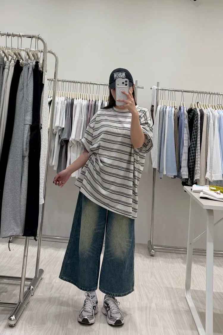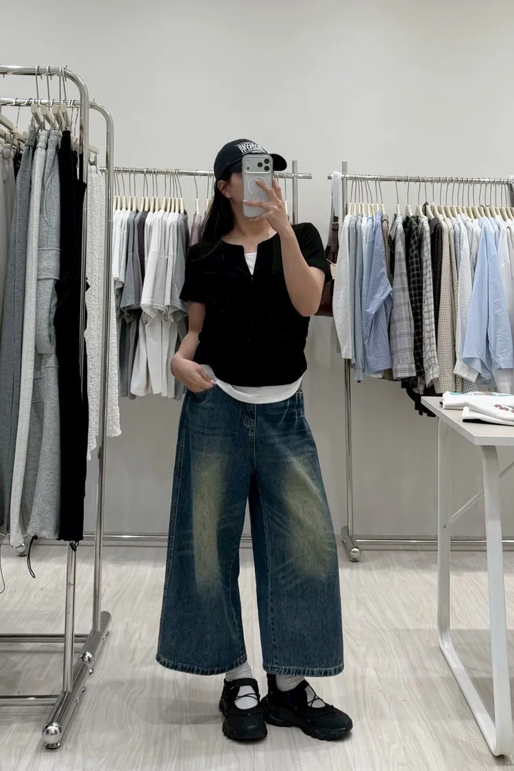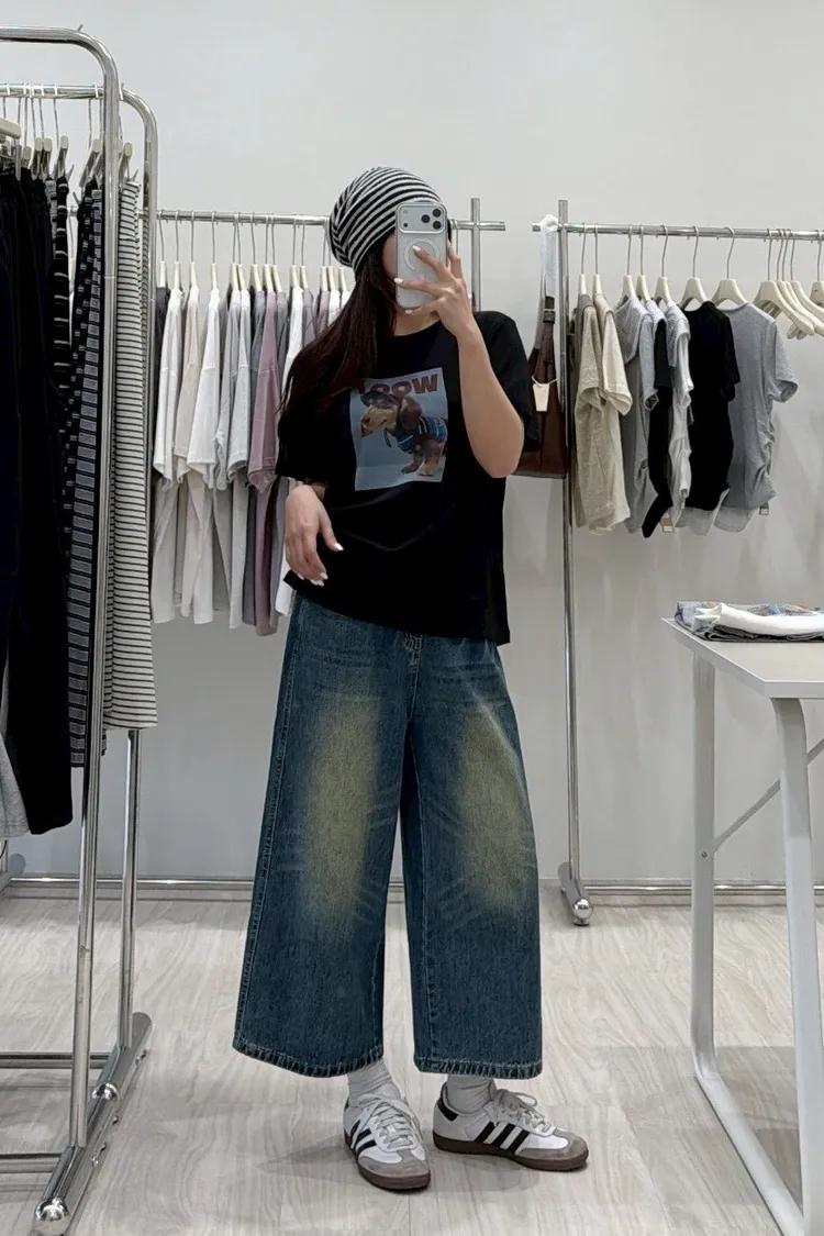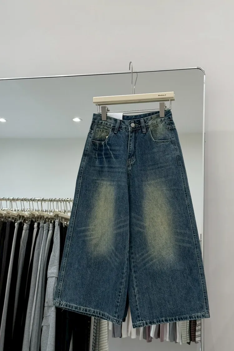 復古刷色八分牛仔褲