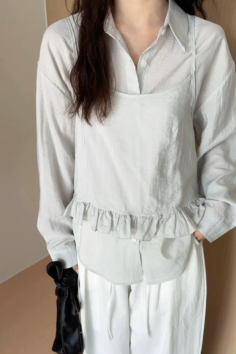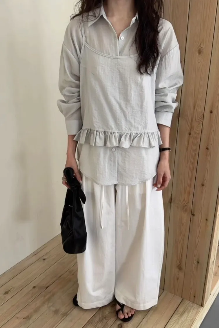 兩件式小荷花背心襯衫