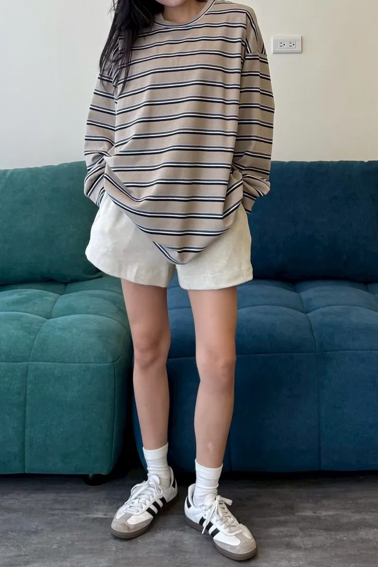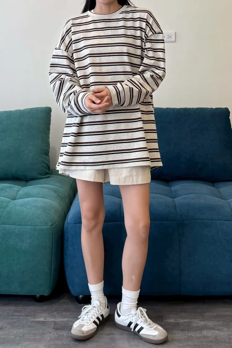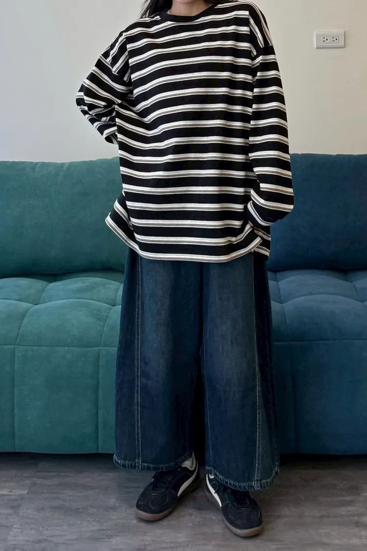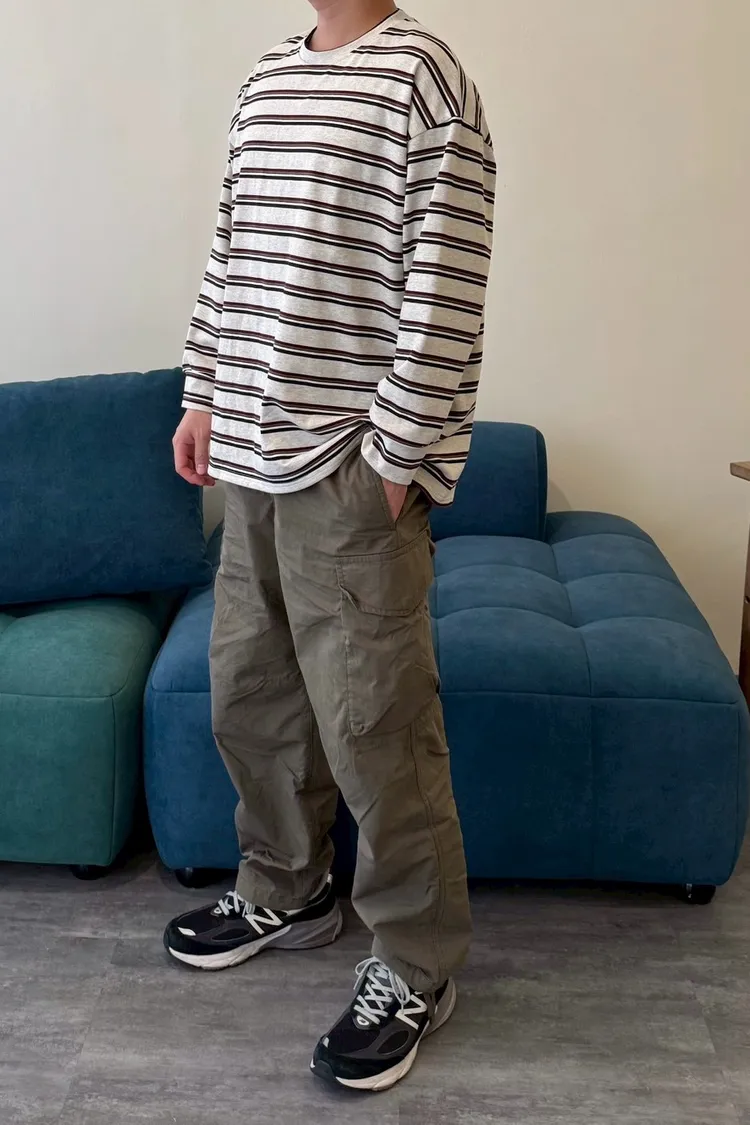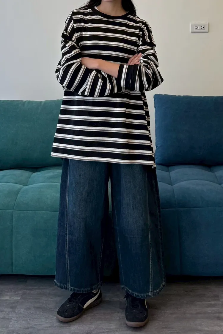 拼色條紋寬鬆踢