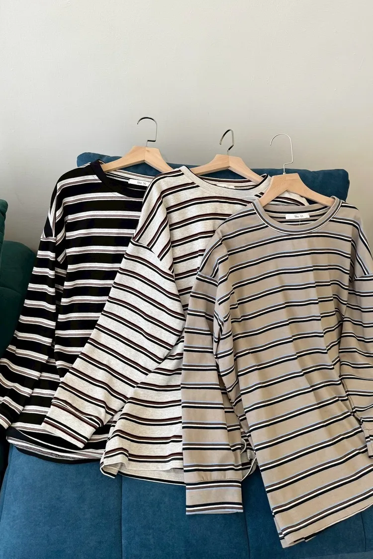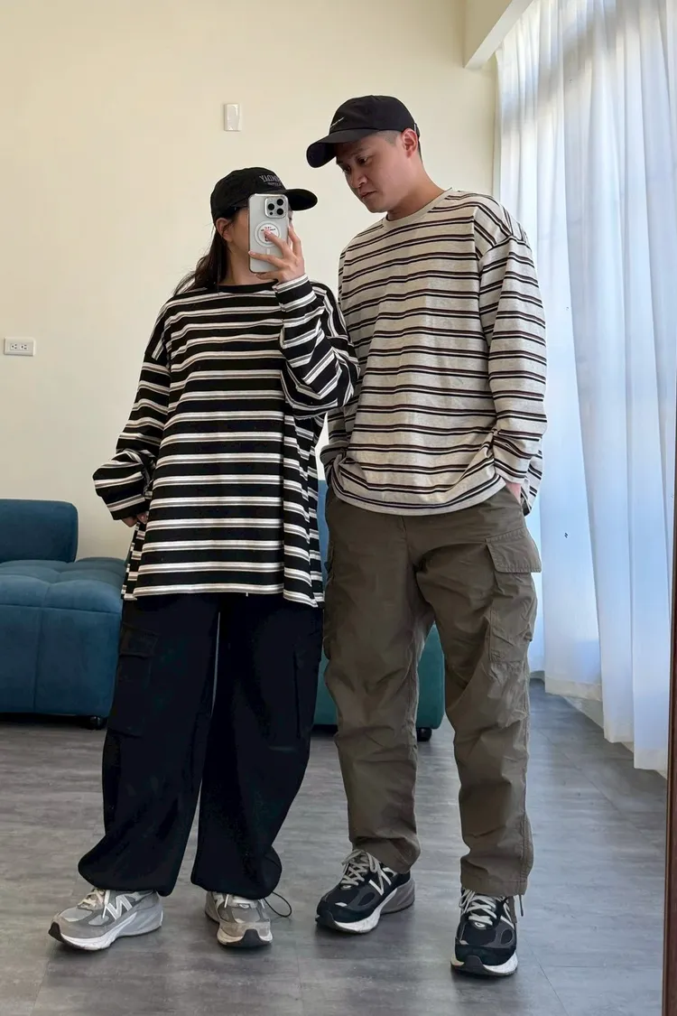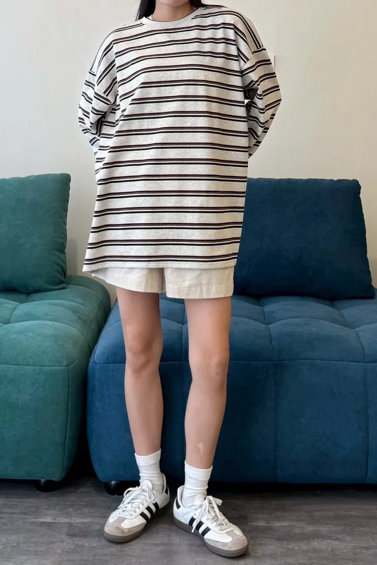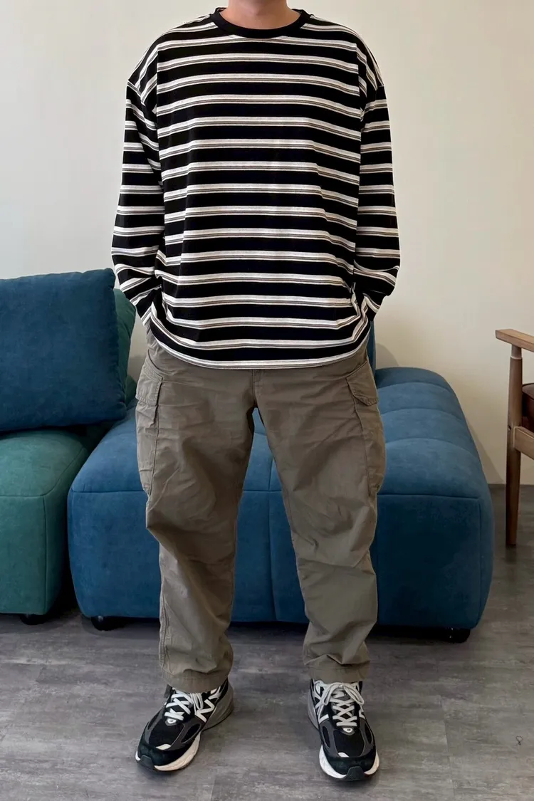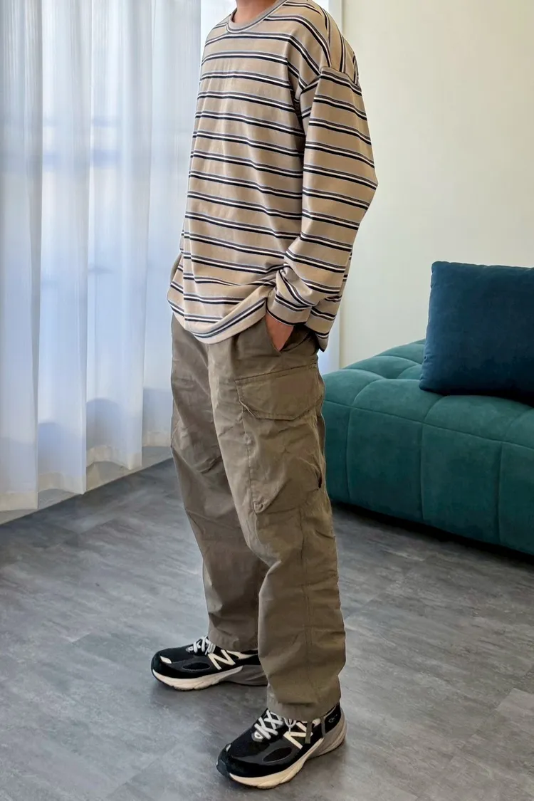 拼色條紋寬鬆踢