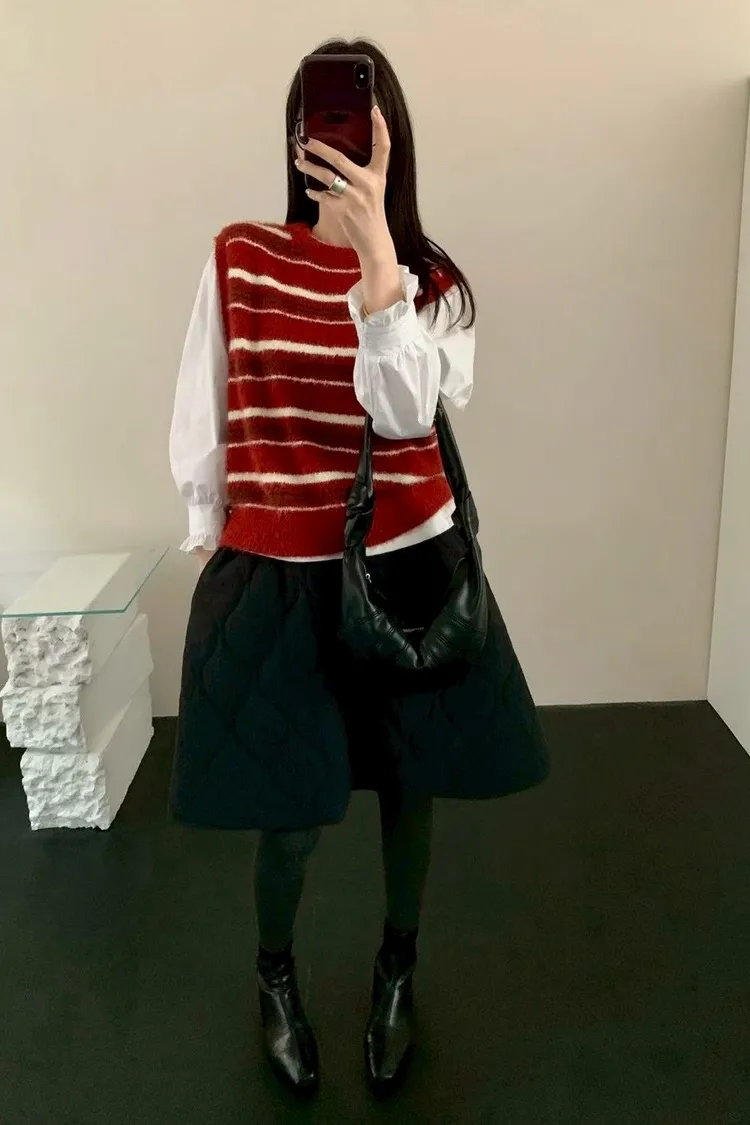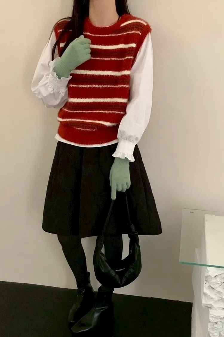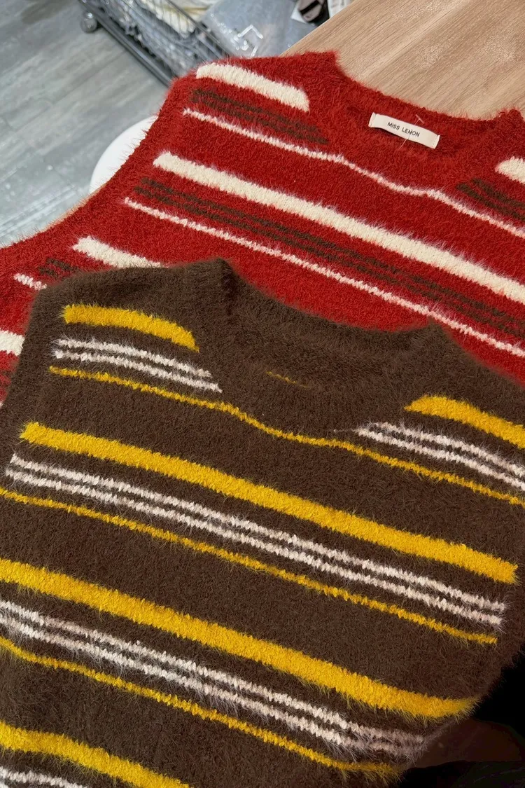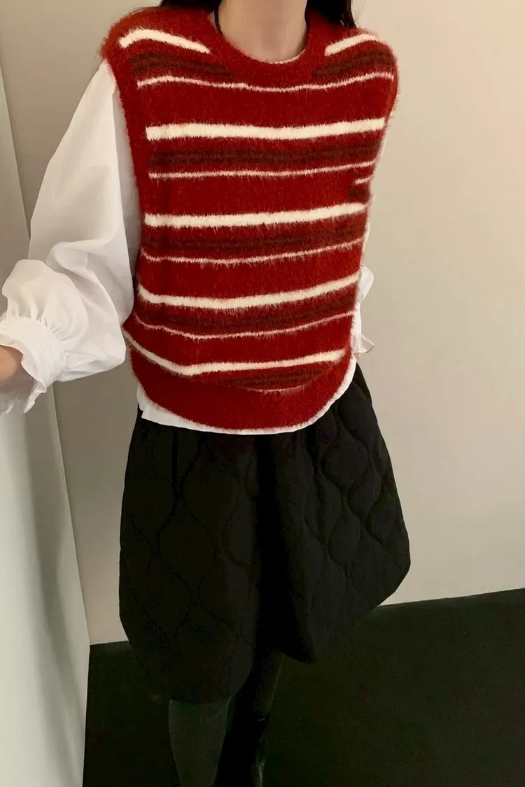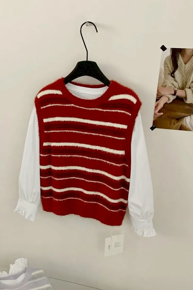 水貂毛配色條紋背心