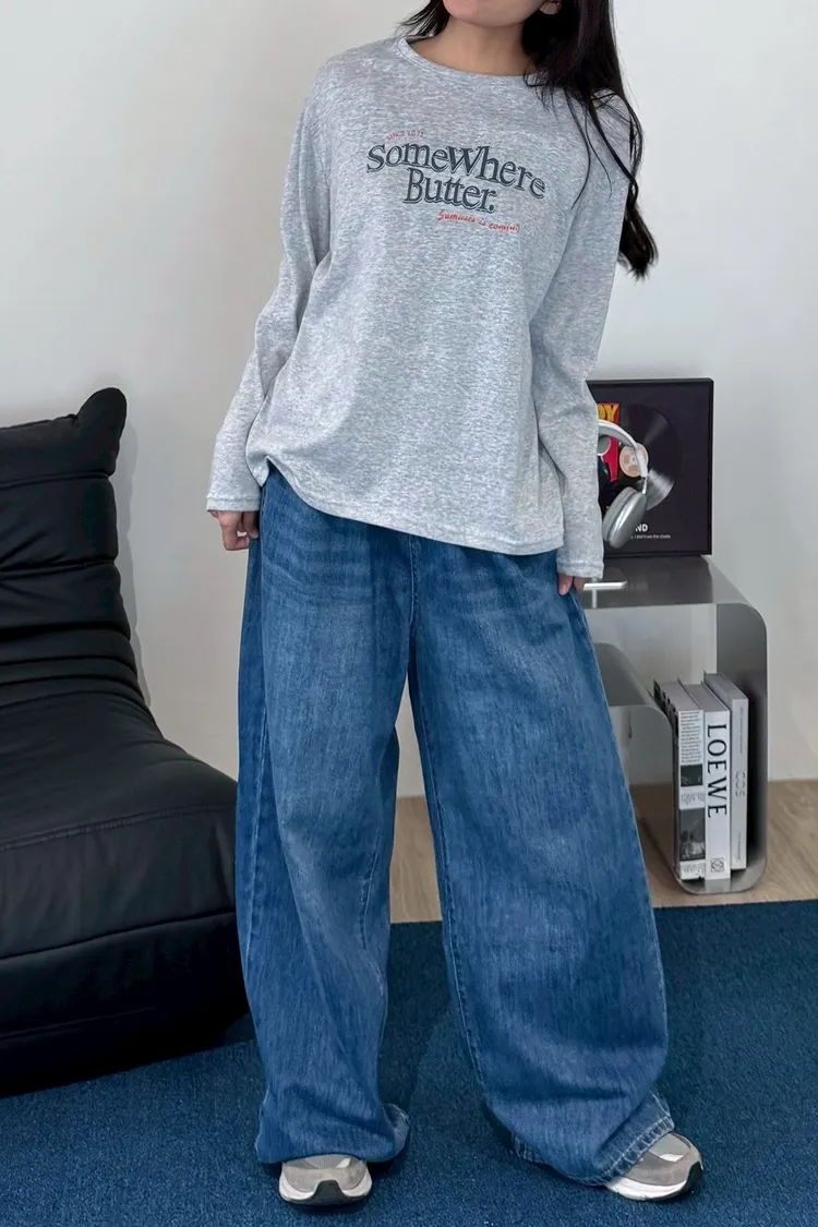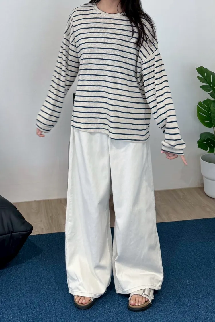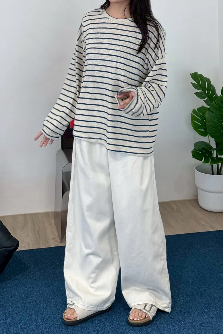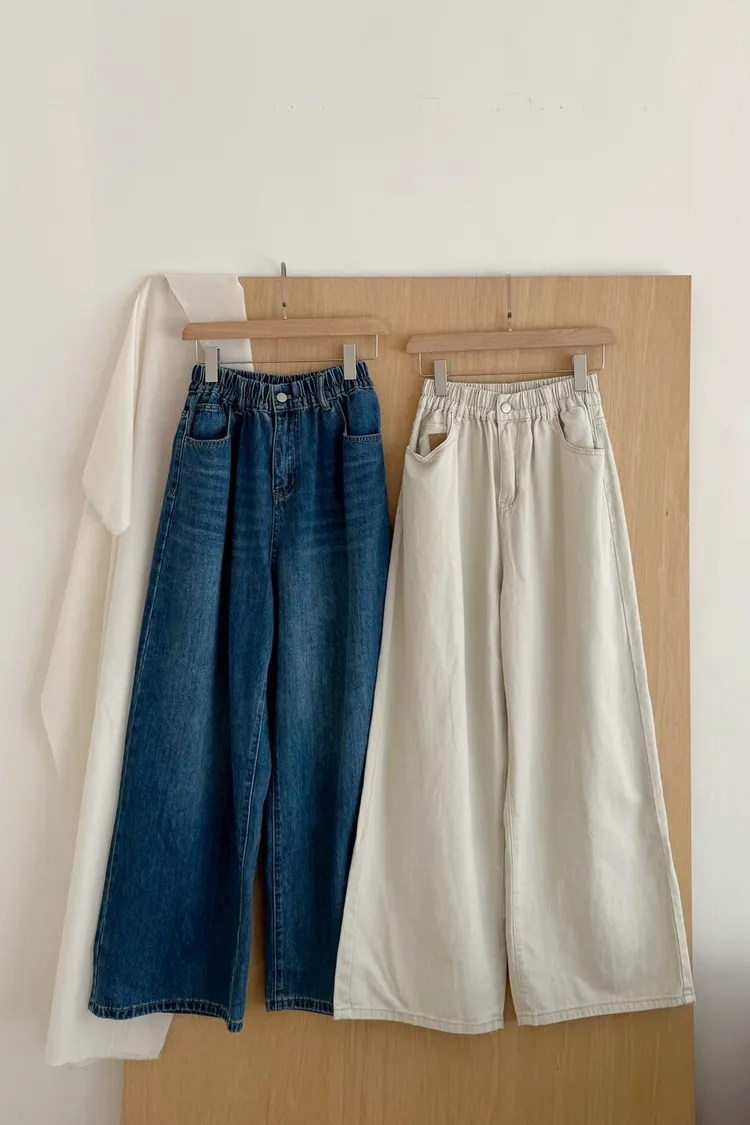 後鬆緊水洗落地褲