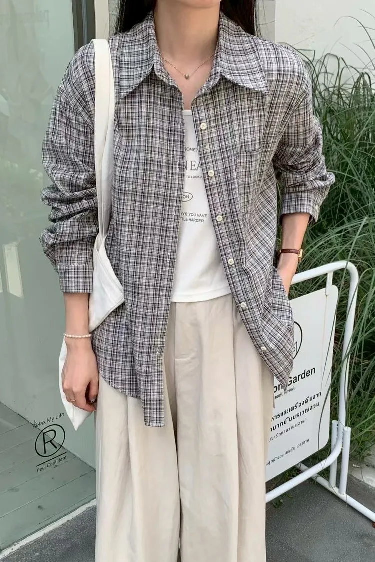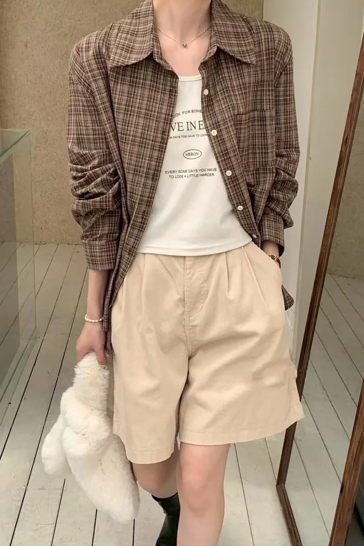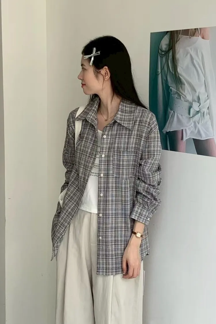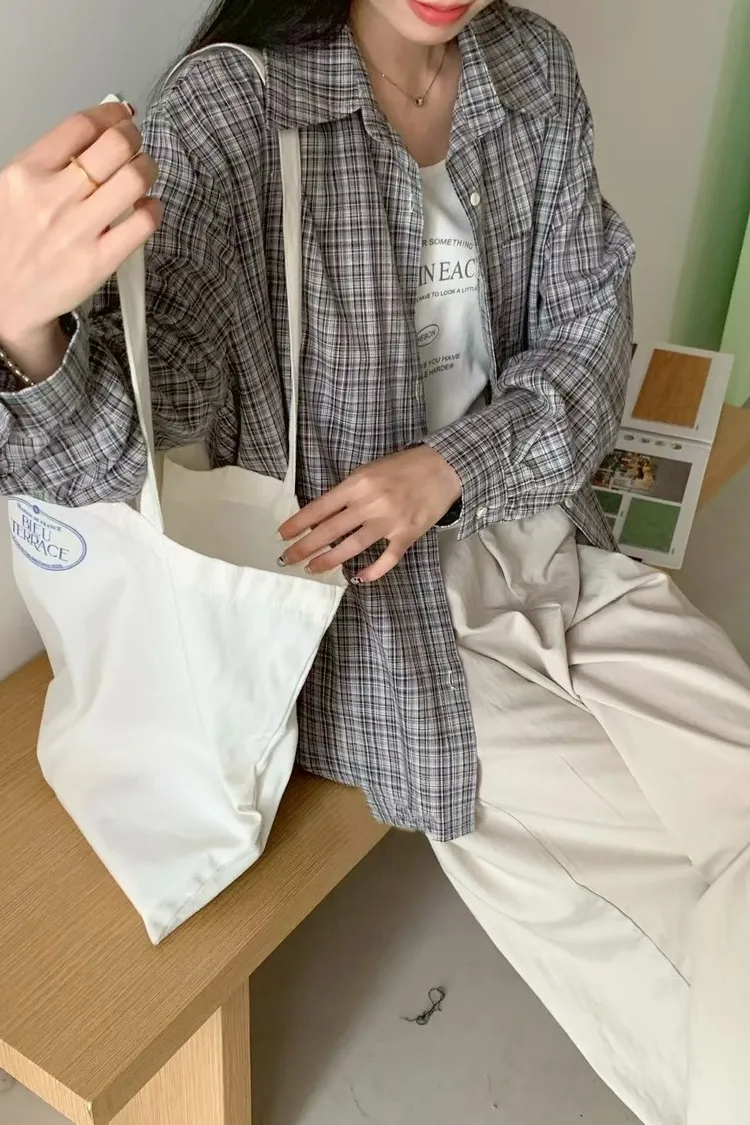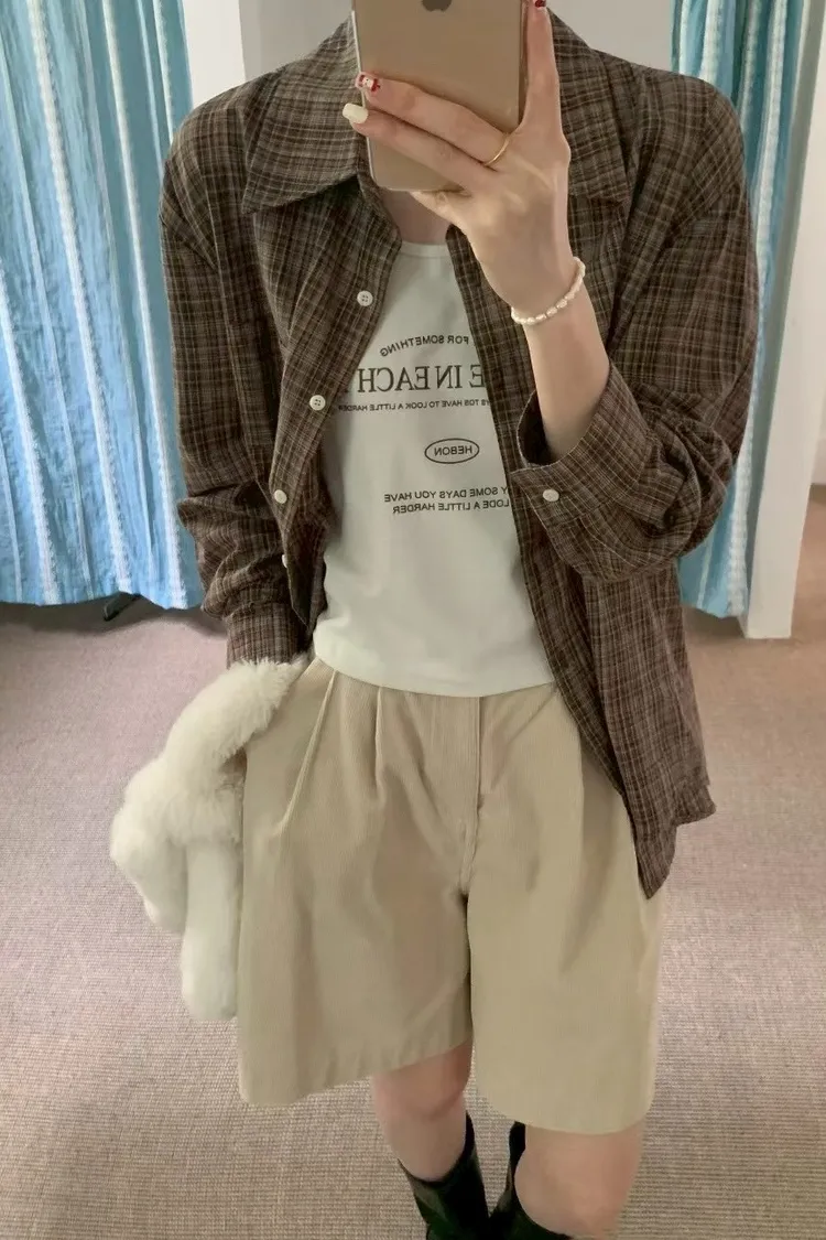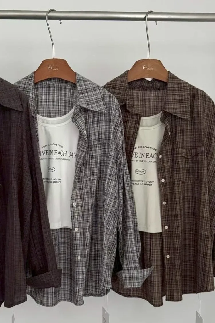 格子襯衫+字母背心