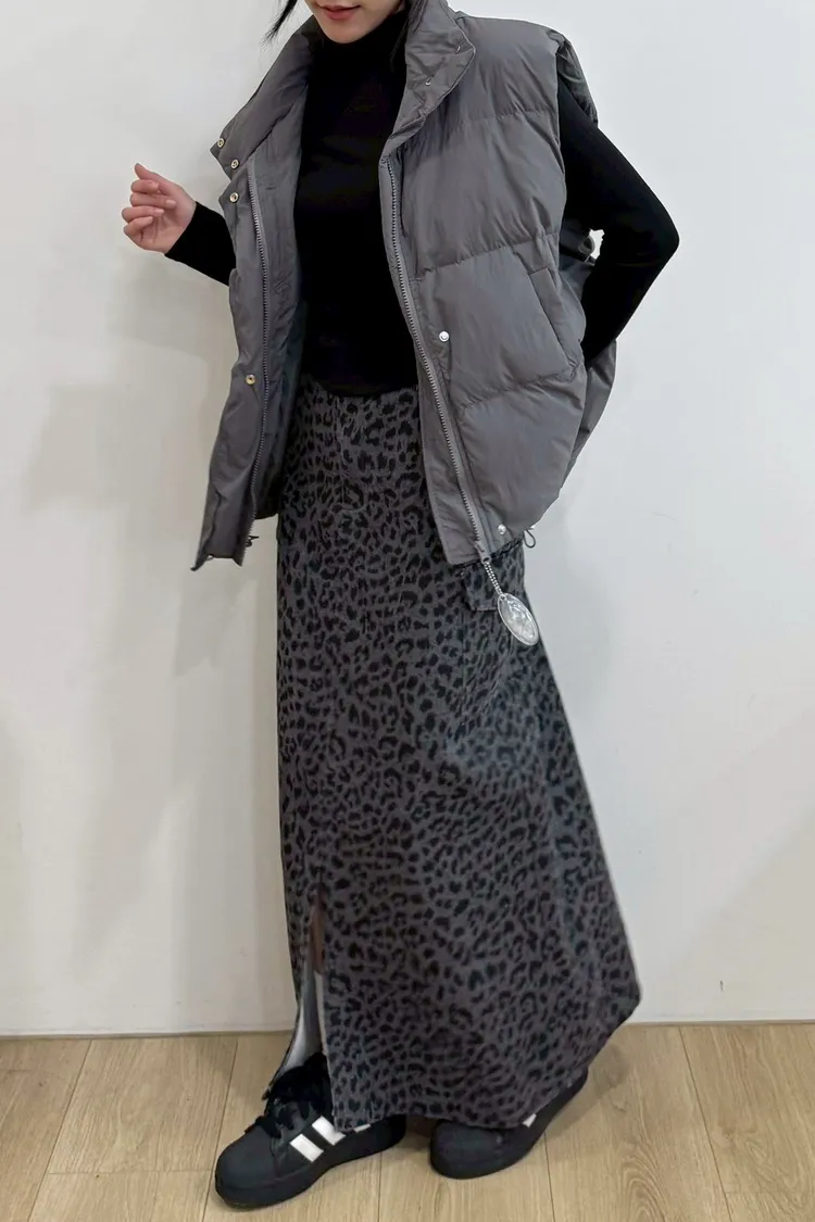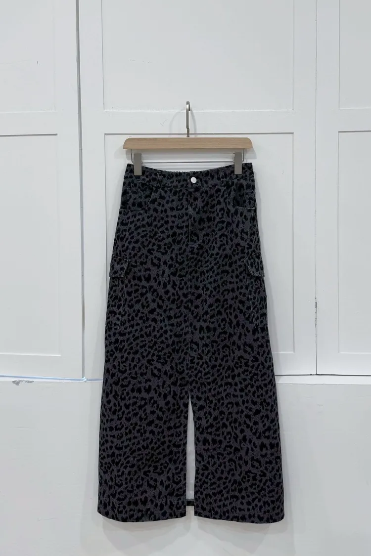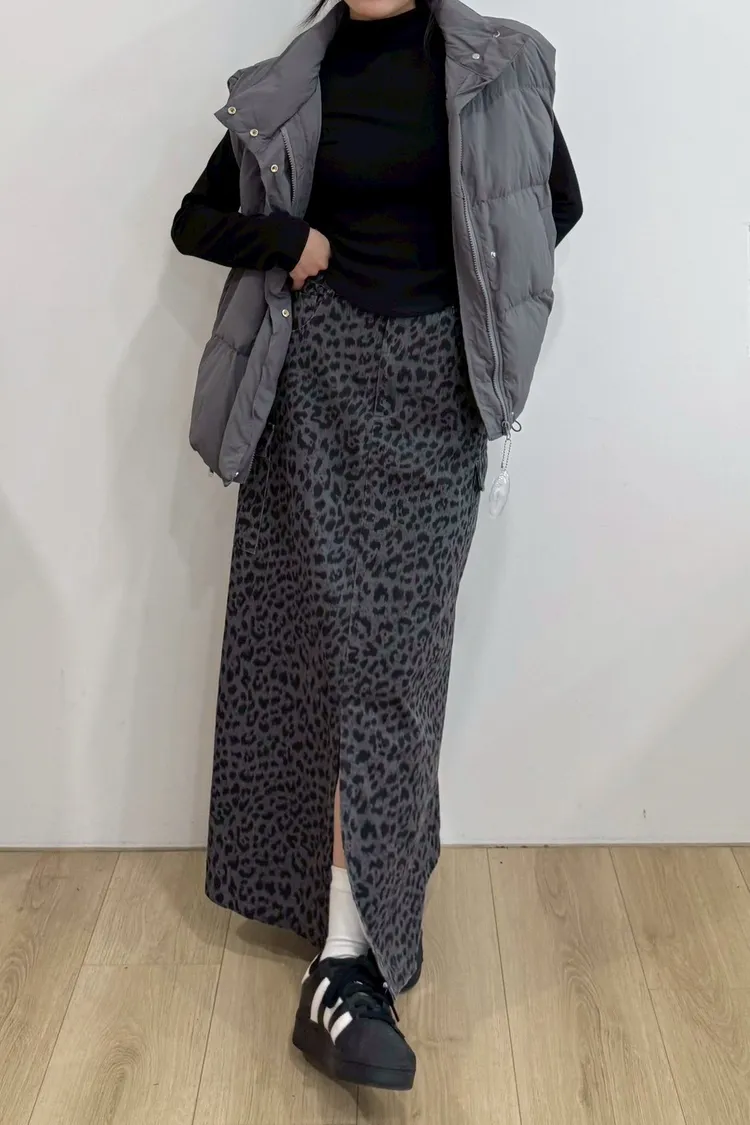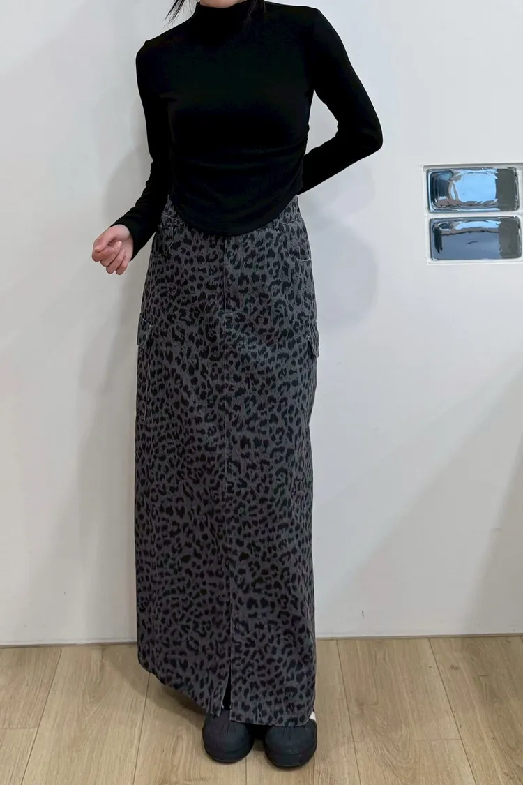 水洗前開衩工裝豹紋裙